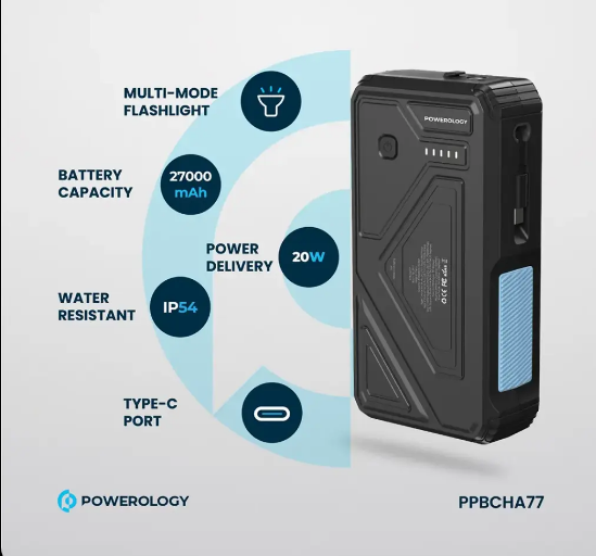 این پاوربانک با باتری لیتیوم-پلیمری با چگالی بالا ۲۷۰۰۰ میلیآمپر ساعت،